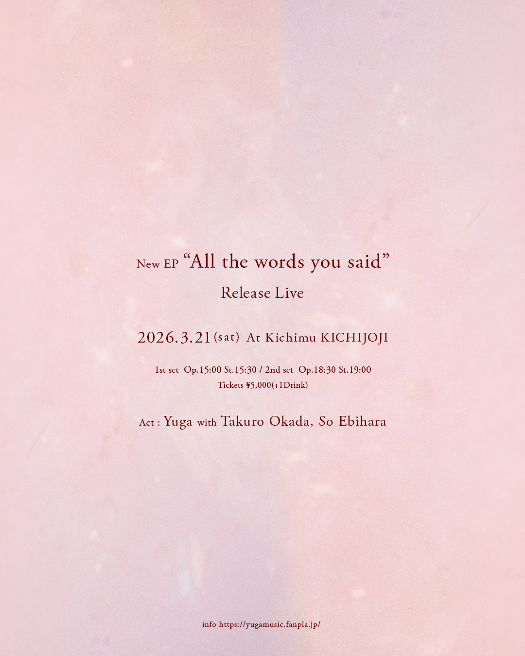 Schedule新色オリジナルグラス発売!2/11(水祝) 宮内優里 By the Sounds2/14(土) バレンタインも怪異研 白日の部2/14(土) バレンタインも怪異研黄昏の部2/21(土) The chat table at Cafe kichimu★2/28(土) なかなかどう占い 早春編★3/1(日) キチムのデッサン会 vol.84★3/8(日) Gingersamm自主企画『想像の在処』出演:Gingersamm、樋口太一、海玲★3/14(土) 射手座と乙女座 高野寛、advantage Lucy(ふたりルーシー)、山田稔明★3/15(日) Ayaka Yabuki Live Vol.0 Let’s celebrate our colors of time3/20(金祝) 芝生蚤の市 2026春 出店 (吉祥寺PARCO屋上)★3/21(土) New EP “All the words you said” Release Live 出演:優河 with 岡田拓郎、海老原颯★4/4(土) 2026 のふたり〜東京編〜 出演:岩崎慧、渡會将士★4/17(金) 夢の国をワクワク語り合おうの会 Vo.l 3 出演:大森はじめ、BIKKE★4/25(土) ナタリーワイズ『結成26周年記念ライブ in 東京』Shop