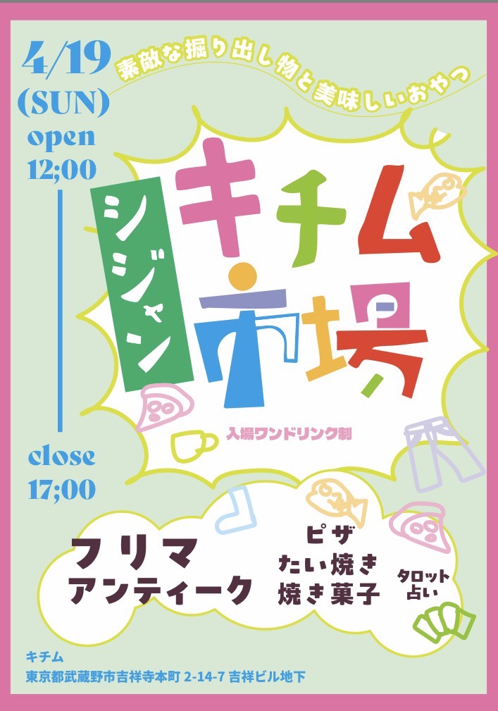 Home 2023.11.132026.03.26 ★マーク ご予約受付中! Schedule 新色オリジナルグラス発売! ★3/27(金) 第六回スポーツ振興展 出演:中塩博斗、平川直人、工藤祐次郎 ★4/4(土) 2026 のふたり〜東京編〜 出演:岩崎慧、渡會将士 ★4/5(日) PHASE 01: TOKYO ECHO THOMAS MARQUARDT ★4/17(金) 夢の国をワクワク語り合おうの会 Vo.l 3 出演:大森はじめ、BIKKE ★4/18(土) 白と枝とポメ 出演:Pome Shih Tzu、白と枝 4/19(日) キチムシジャン ★4/25(土) ナタリーワイズ『結成26周年記念ライブ in 東京』 ★5/6(水祝) 下津光史(踊ってばかりの国)ワンマンライブ SR_BLUE presents – キチム16周年記念 – ★5/31(日) かわりばんこで歌おうよ!〜brother & sister〜 出演:岩崎愛、岩崎慧 Shop 検索 This site is protected by reCAPTCHA and the Google Privacy Policy and Terms of Service apply. X Instagram Facebook YouTube シェアする