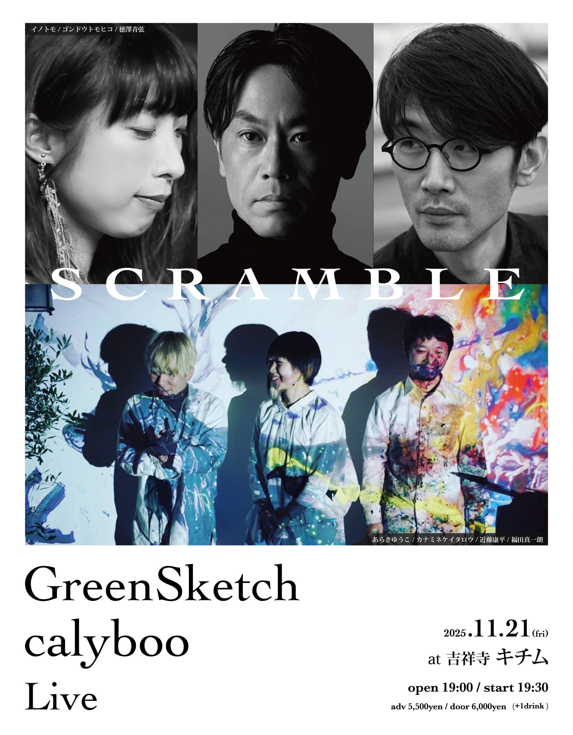件名に[11月21日 GreenSketch × calyboo Live 予約]と明記の上、お名前/お電話番号/チケット枚数を添えてお申し込み下さい。